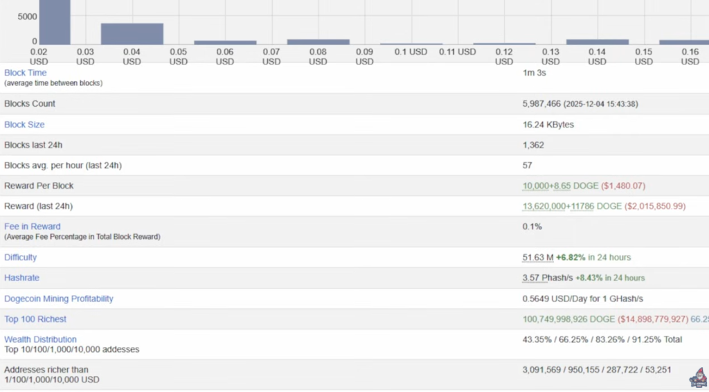 - Block Reward: ~10,000 DOGE (worth about $1,480 at press time)