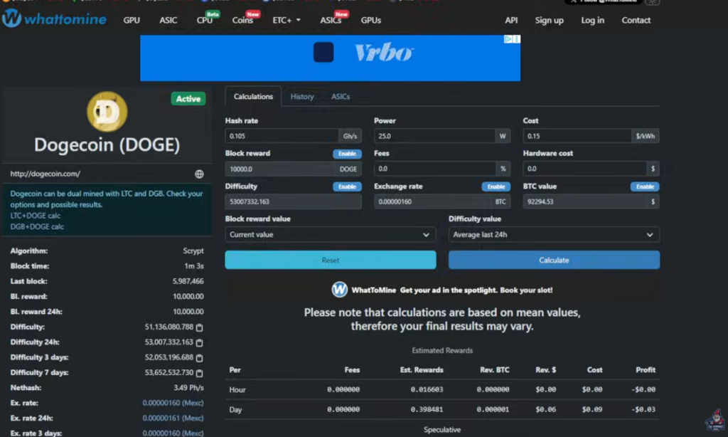 - About $0.06/day in DOGE even with merged mining