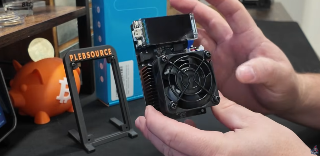 The first thing that jumped out was the custom stand, clearly labeled “Plebsource”. That’s the manufacturer, though they’re not selling directly. All purchasing goes exclusively through Helium Deploy as of today.