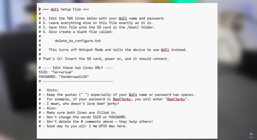 - Open a text file (wifi.txt).