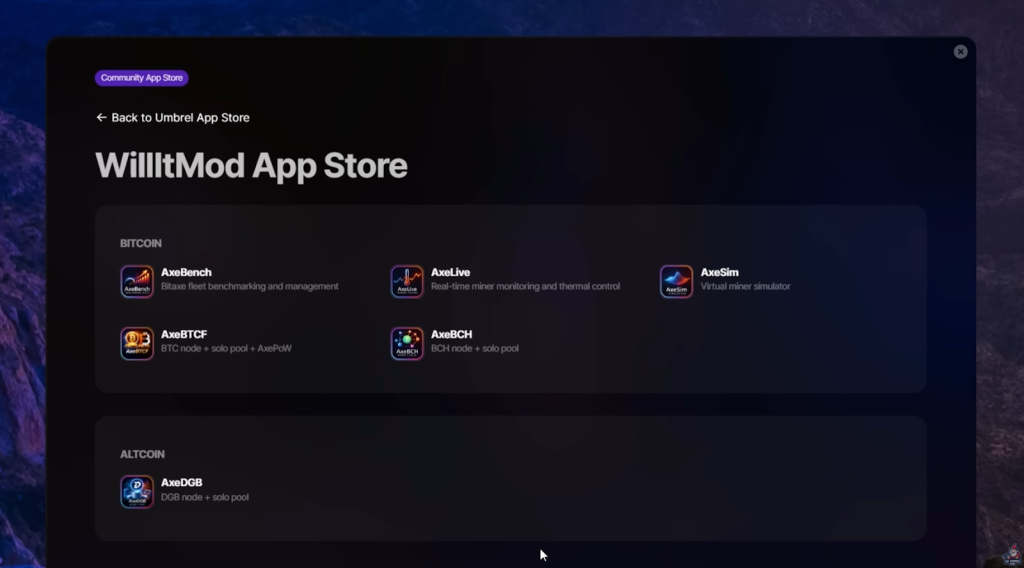 Let’s get hands-on! If you’re familiar with Umbrel, you know how easy it is to add apps. For Mineshop EU’s Axe suite, here’s what you need to do: