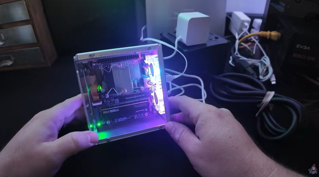 First thing: this looks sharp—acrylic glass, a nice chassis, and those RGB fans shining through. It feels like a mini high-end PC (and not a thrown-together science fair project). You can tell some actual thought and care went into this one—not just another plastic box.